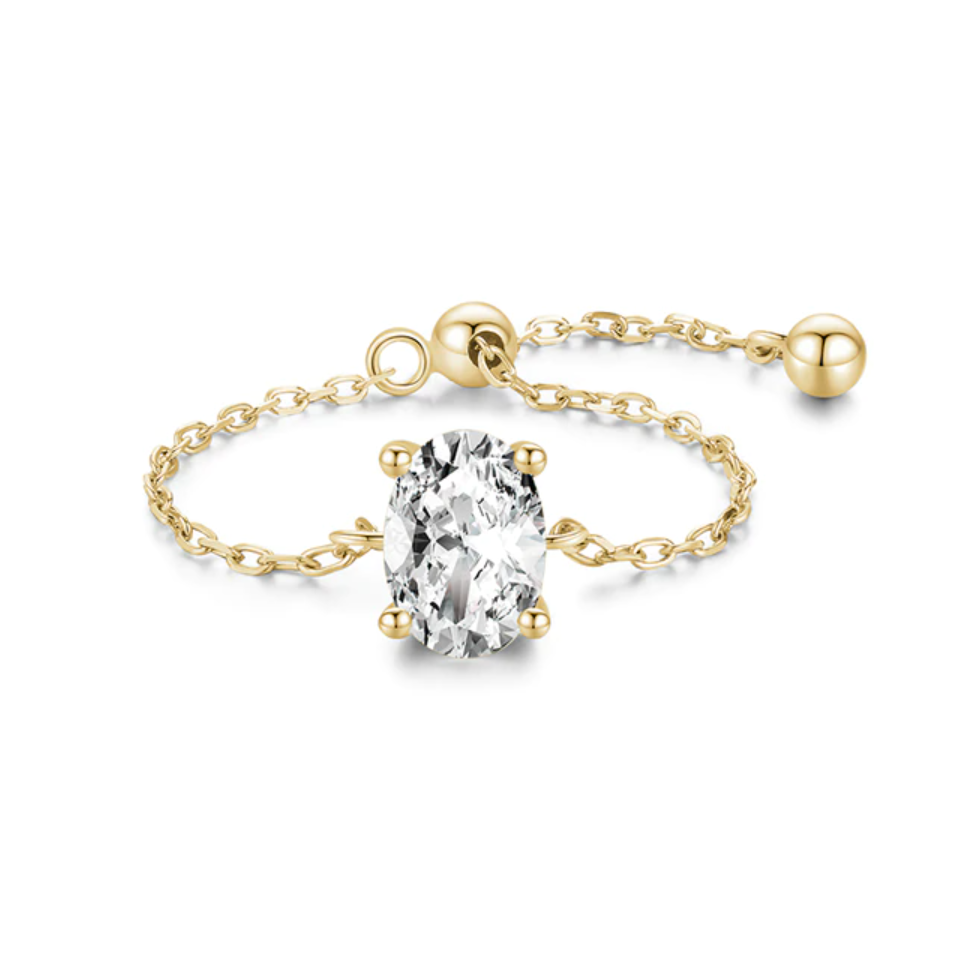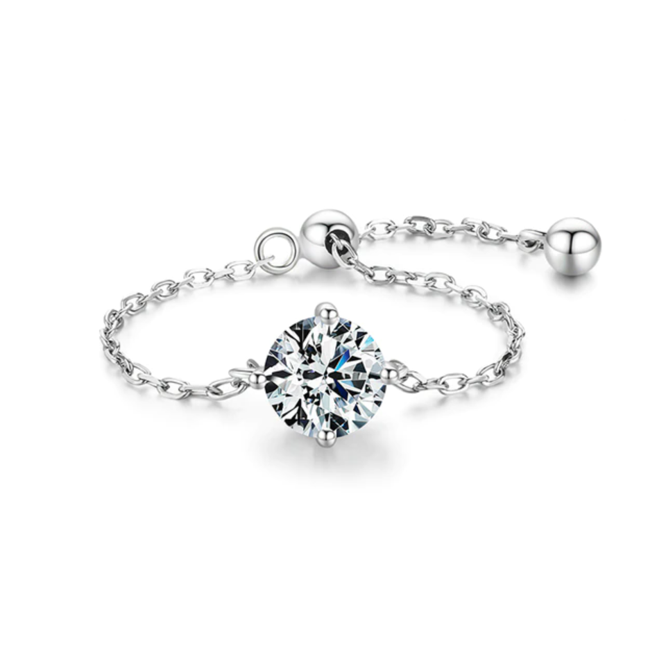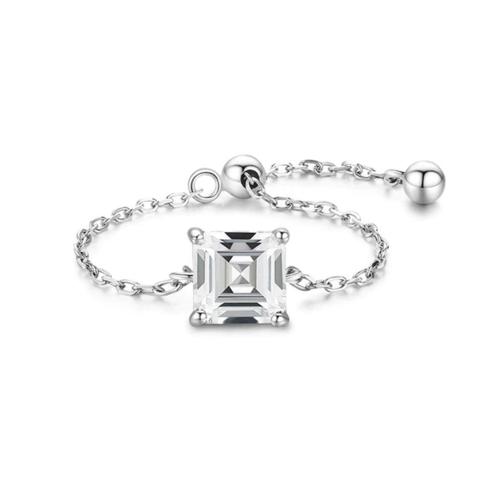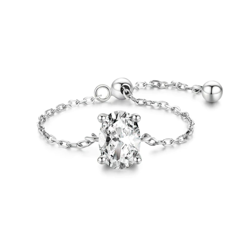 Elevate your style with this exquisite, minimalist and modern ring, crafted with a sleek sterling silver adjustable chain band. The gleaming cubic zirconia of your choice will shine brilliantly, making this piece truly unique and reflective of your personal style. With its refined design and adjustable band, this ring is the finishing touch of sophistication to any look, making it the ideal choice for the modern, stylish woman who wants to stand out from the crowd.